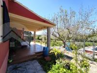 Op het omheinde perceel van 2.580 m² vind je olijf- en fruitbomen, een voorste pergola, barbecue, garage, overdekte parkeerplaats voor twee auto's, een privézwembad en een bergruimte.