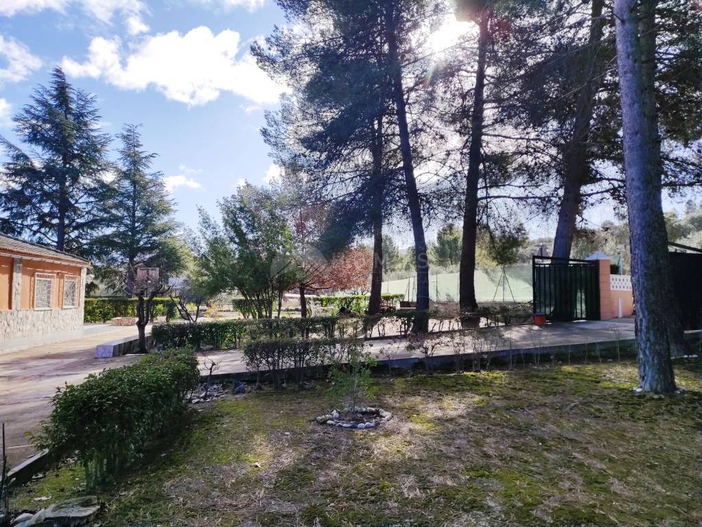 Het geheel ligt op een volledig omheind perceel van 5.258 m², met tuinzone en olijfbomen, wat zorgt voor privacy en volop buitenruimte. Daarnaast zijn er een zwembad, barbecueplaats en overdekte parkeerplaatsen voor meerdere auto's.