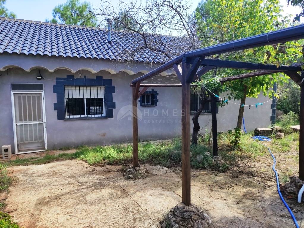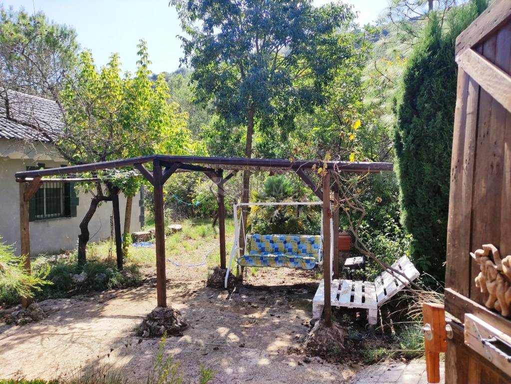For sale, a charming country house in Villalonga, set in the mountains and surrounded by nature — ideal for those seeking a peaceful and sunny home close to all amenities. The property, with 141m² all on one level, offers 4 bedrooms, a bathroom, a spacious open-plan living-dining room with kitchen and direct access to the covered pergola, perfect to relax and enjoy the natural surroundings.