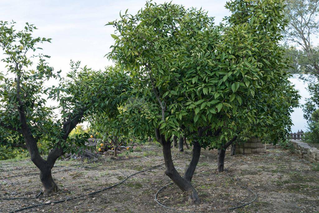The property sits on a plot with fruit trees, mainly orange trees, and features irrigation water, cistern, septic tank, and electricity. Access is easy via a paved road.