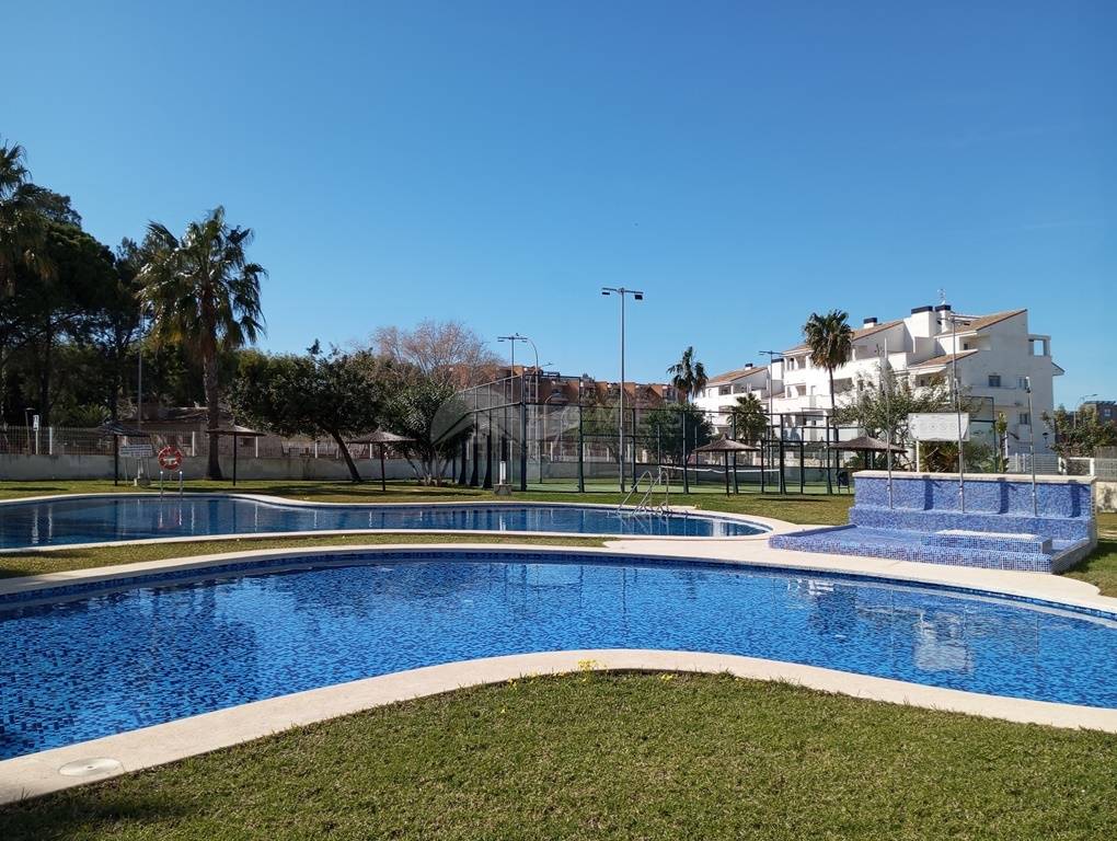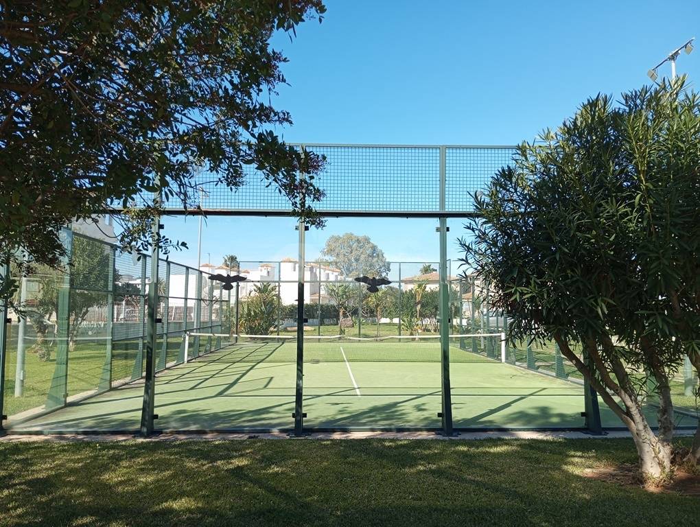 The residential complex offers well-maintained communal areas with gardens, swimming pools for adults and children, and a paddle tennis court, creating a pleasant environment for both temporary and long-term stays.